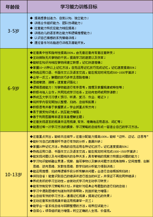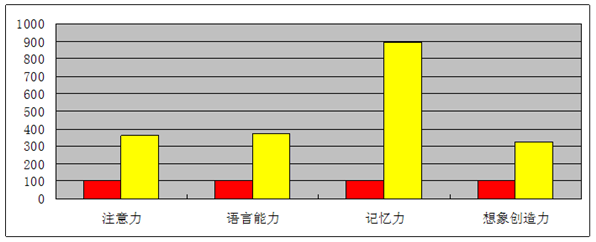 2002-2006年全球知名音乐教育专家通过在中国18个省市151000名学员跟踪显示,通过音乐智能训练的孩子:注意力提高259% ;语言能力提高272%;记忆力提高796% ;想象创造力提高227%。