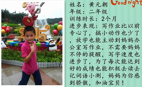 不需要妈妈不停的提醒,写字速度也进步,为了每次能达到好的成绩也能积极