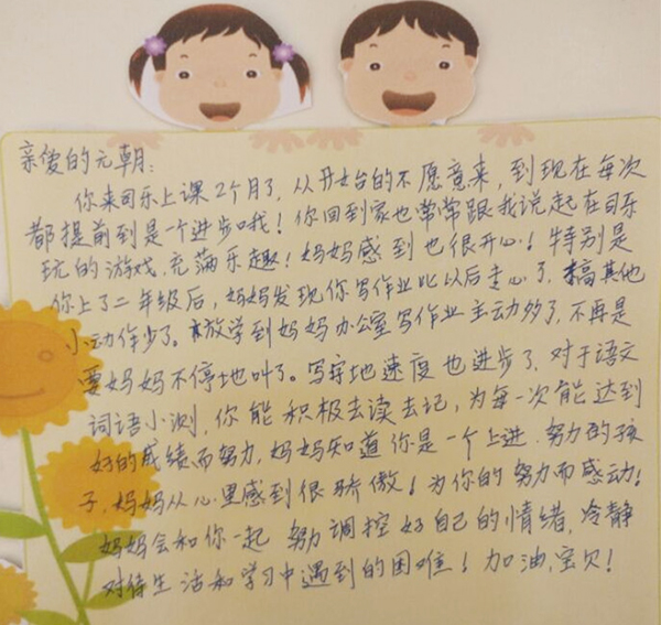 进步表现:写作业比以前专心了,搞小动作也少了,放学也能主动到妈妈办公室作业了,