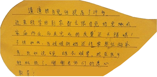 进步表现:积极自动 自觉性提高 帮忙做家务