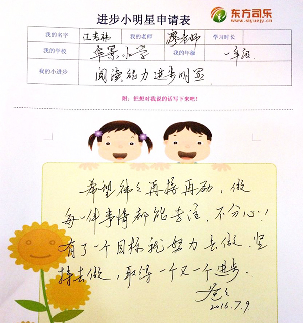进步表现:阅读能力进步明显。