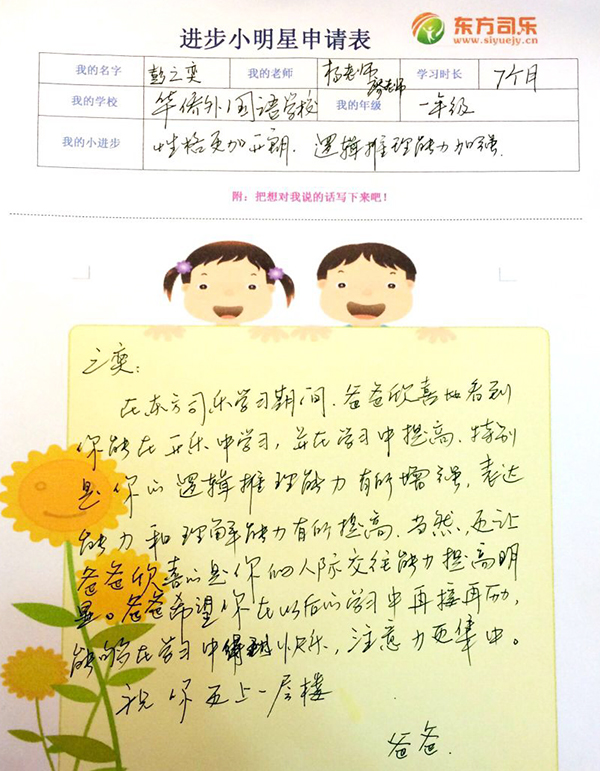 进步表现:性格更加开朗,逻辑推理能力加强。