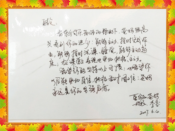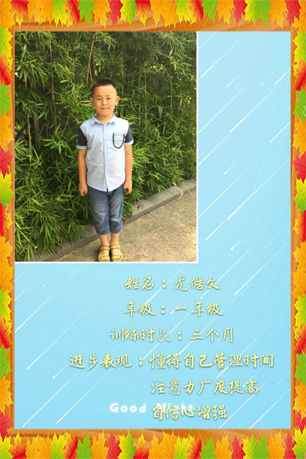 进步表现:懂得自己管理时间,注意力广度提高,自信心增强。
